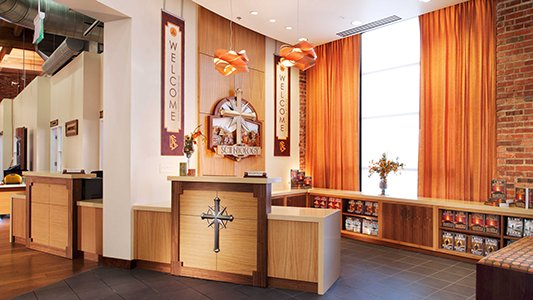 De Kerk restaureerde haar gebouw in de historische wijk nabij honkbalstadion in het centrum van de stad.