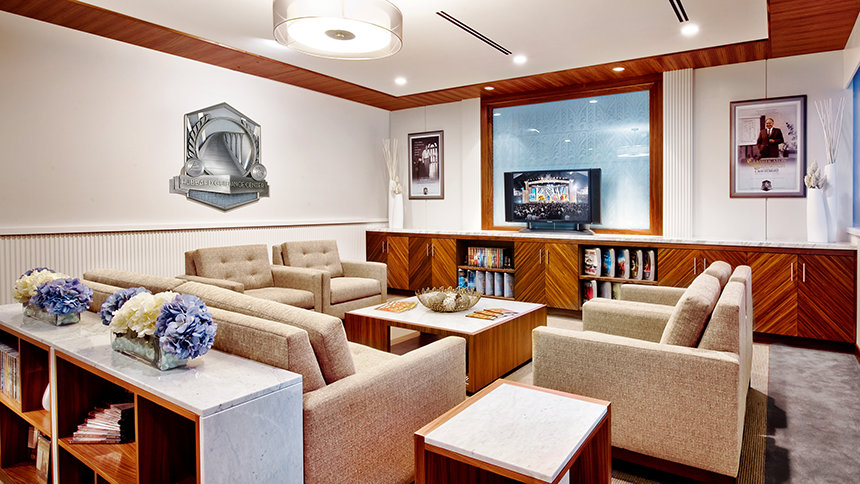 Vroeger was dit een functioneel gebouw grenzende aan het Art Deco Cedars of Lebanon Hospital van 1928, gebouwen ontworpen door Claud Beelman. De massieve wederopbouw begon in november 2009 en omvat nieuwe muren, geheel nieuwe plafonds en afwerkingen, maar ook zelfgemaakte meubels in de fabriek van de Kerk met geïmporteerd hout en marmer uit Italië.