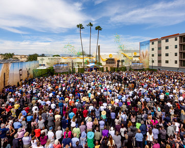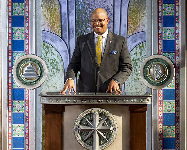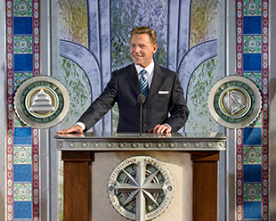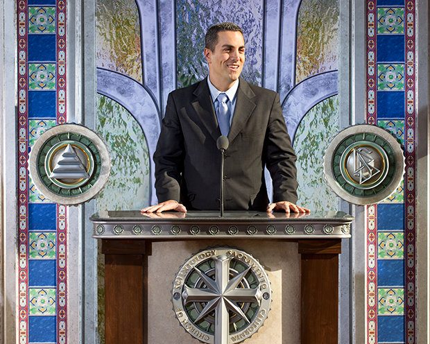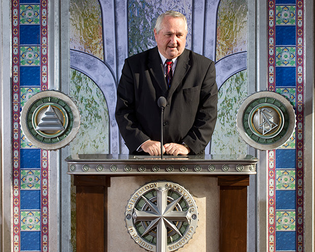 De openingsceremonie van de nieuwe Kerk werd geleid door de heer David Miscavige, Voorzitter van het Raad van het Religious Technology Center en leider van de Scientology religie.