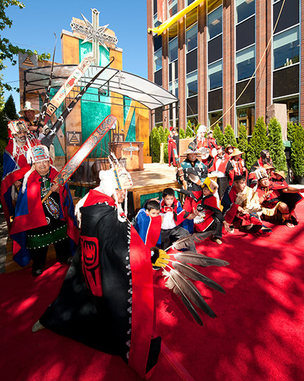 Voorzitster Cecile Hansen van de Duwami stam, een afstammelinge van Opperhoofd Seattle naar wie de stad is vernoemd, opende het evenement met een eeuwenoude ceremonie, en verwelkomde de Kerk in haar nieuwe thuis.