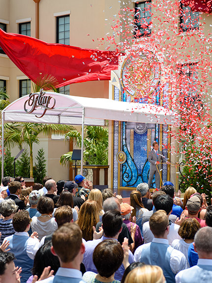 Een tweetal klassieke gebouwen in het centrum van Clearwater vormden het middelpunt toen 3000 Scientologen en hun gasten op zaterdag 25 juni 2016 in de stad bijeenkwamen om getuige van te zijn het nieuwste hoofdstuk in de expansie van de Kerk.