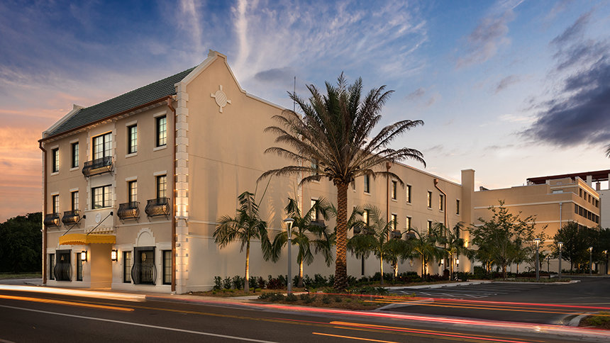 Gebouwd in 1927, heette het 1750 vierkante meter grote gebouw oorspronkelijk het West Coast Hotel – en het werd gezien als een van de mooiste boetiekhotels in Florida. Het hotel vormde het toneel voor gevarieerde evenementen van Miss Florida verkiezingen tot de seizoensvoorbereiding van de Philadelphia Phillies. In 1981 werd het gekocht door de Scientology Kerk.