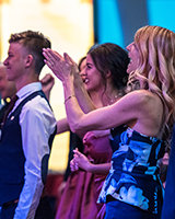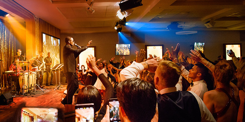 De trouwe Zuid-Afrikaanse aanhangers van de Internationale Associatie van Scientologen (IAS) waren het middelpunt van de belangstelling tijdens het allereerste Afrikaanse IAS Patronsbal. De ruimte was voor een galabal omgetoverd in een gouden glorie met een fonkelend achterdoek en bloemstukken vol protea bloemen. Dhr. Miscavige zette meer dan 100 IAS-leden in het zonnetje voor het ondersteunen van de enorme humanitaire outreach, en bedankte ze voor hun activiteiten en hun toewijding om van deze grootse opening een succes te maken. De trots was voelbaar toen deze toegewijde scientologen hun onderscheidingen accepteerden. Na een uitgebreid diner, lieten muzikale sterren de ruimte heen en weer schudden. De Caribische sensatie Michele Henderson en Harlems hiphop legende Doug E. Fresh zetten het ritme voor de rest van de avond terwijl de Patrons de dansvloer opgingen en de rest van de avond feestten.