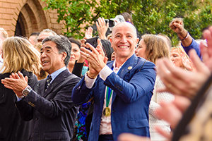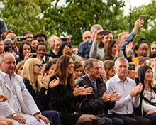 De festiviteiten gingen maar door terwijl parochianen uit het trio van Kerken in de provincie Gauteng het Auditorium van het kasteel binnenstroomden voor een presentatie van de Internationale Nieuwjaarsviering. Tot verrassing en vreugde van het publiek, kwam dhr. Miscavige het podium van het Auditorium op. Hij trakteerde het publiek op een informele samenvatting van de evenementen van die week. Ze stonden op en juichten enthousiast, omdat ze wisten dat deze Grootse Opening niet alleen de deur naar spirituele vrijheid heeft geopend voor scientologen, maar ook een belofte van hoop en hulp voor Afrika is.