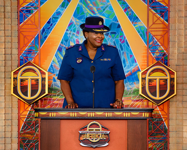 Brigadegeneraal Sthembiso Shobede-Nkosi verwelkomde de Kerk in haar nieuwe thuis namens de Zuid-Afrikaanse politie. Ze sprak verder over Kyalami als een bolwerk in de strijd van het land tegen drugs.