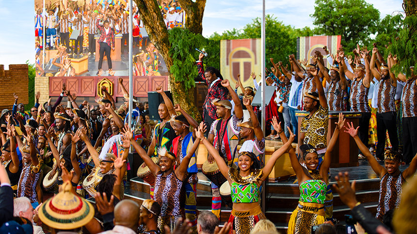 Ter ere van die buitengewone toekomst, vulde een koor van honderden zangers het kasteel, van het podium tot de borstwering. Gekleed in traditionele Afrikaanse gewaden dansten en zongen ze “Winds of Change” – een lied dat speciaal voor de gelegenheid was geschreven. Geïnspireerd door L. Ron Hubbard en zijn droom van grenzeloze spirituele vrijheid voor Afrika, veroverde de uitvoering de harten van alle aanwezigen. Hoogwaardigheidsbekleders die namens de Zuid-Afrikaanse politie en de overheid spraken, sloten zich daar allemaal bij aan en verwelkomden gezamenlijk deze historische gebeurtenis als een “nieuw ontwaken voor ons geliefde Afrika”.