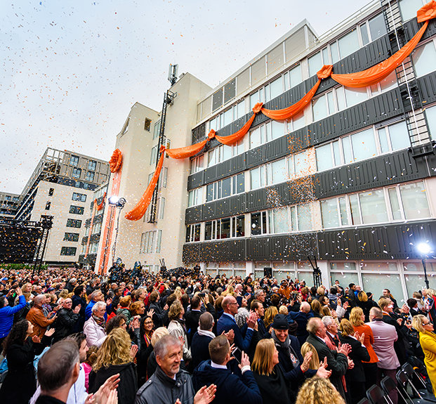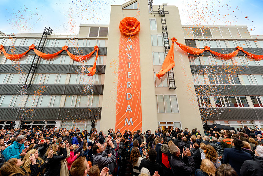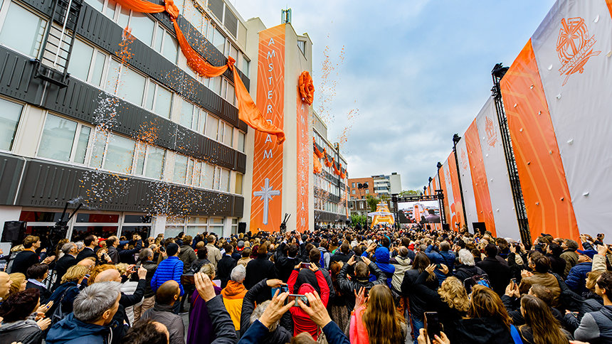Sterker nog, de grootse opening van de nieuwe Kerk in Amsterdam werd een uitbundige viering van kennis, zowel in een moderne als in een spirituele zin. Dus verzamelden er zich op zaterdag 28 oktober in het centrum van Amsterdam zo’n 1300 scientologen en gasten, om de opening van een opvallend nieuw oriëntatiepunt te vieren, in het belangrijke middelpunt van de buurt, aan de bedrijvige Wibautstraat.