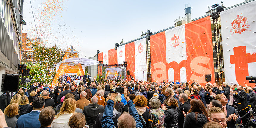 Maarten Lubbers, voorzitter van Samen één Amsterdam sprak over de Kerk als een nieuw lid om de instituten van kennis, bedrijven en organisaties in de “slimste straat” van Nederland te versterken: “Iedereen heeft een veilige plek nodig die beslotenheid en sereniteit biedt, met jezelf en met je familie en vrienden. In het leven ervaren mensen verlies en maken ze tragedies mee. Ze willen en hebben een plek nodig om na te denken. En jullie nieuwe thuis is een uitbreiding van de straat, de deuren staan open en mensen zijn van harte welkom. Ik geloof dat hier iedereen met compassie ontvangen zal worden en met open armen begroet zal worden. Want dit is een centrum dat oprecht toegewijd is aan het inspireren en verheffen van onze Nederlandse samenleving.”