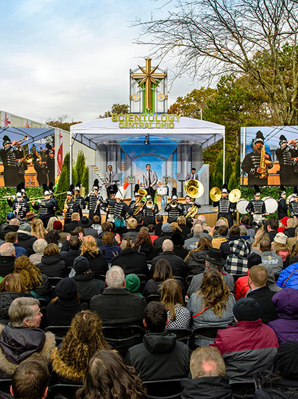 Slechts een paar minuten van hun beroemde ‘hoefijzer’-stadion, op een frisse herfstmiddag, op zaterdag 9 november, kwamen Scientologists en gasten bijeen voor een ander soort wedstrijddag: de openingsaftrap van een nieuwe Scientology Kerk voor Central Ohio.