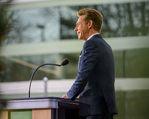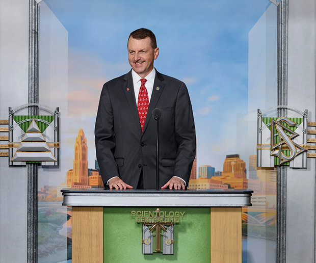 Dhr. David Miscavige, de kerkelijk leider van de Scientology religie, richtte zich tot alle aanwezigen, onder wie die parochianen die hielpen om deze nieuwe Kerk tot leven te wekken: “Dank je wel, en wat een eer om hier in Columbus te staan op de dag waarop je het puntje op de ‘i’ in Ohio zet! Zodoende, en onnodig om te zeggen, is dit ook een dag om je borst te laten zwellen met Midwesterse trots. Want hoewel Columbus misschien Amerika ontdekte, dankzij jouw doorzettingsvermogen, vasthoudendheid en verregaande stoutmoedigheid, gaf je Amerika een nieuwe Scientology Kerk waarmee hij nu zichzelf kan ontdekken.”