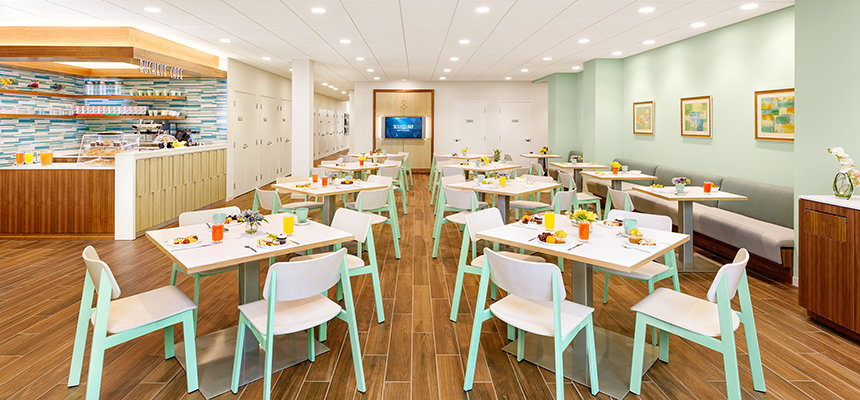 Het Café is een ontmoetingsplaats, voor bezoekers die een rondleiding krijgen door de Kerk, voor degenen die een van de vele evenementen bijwonen en voor parochianen tijdens pauzes van hun Scientology diensten.