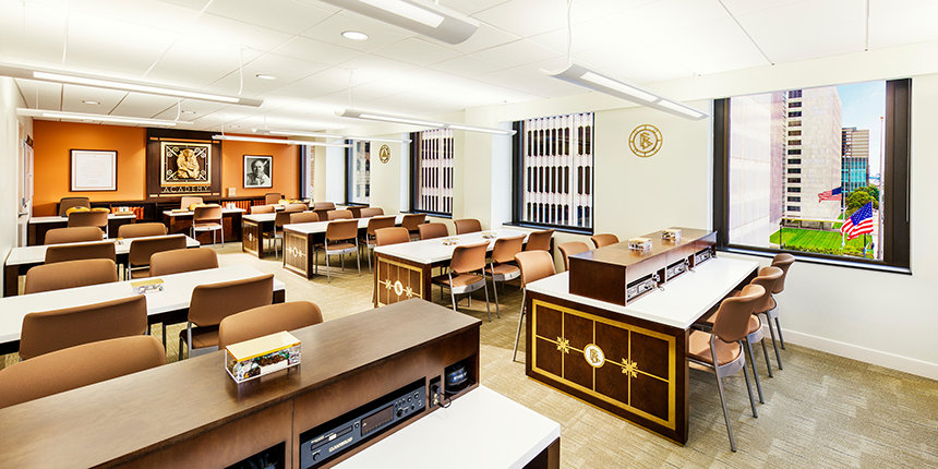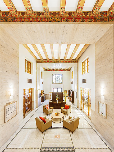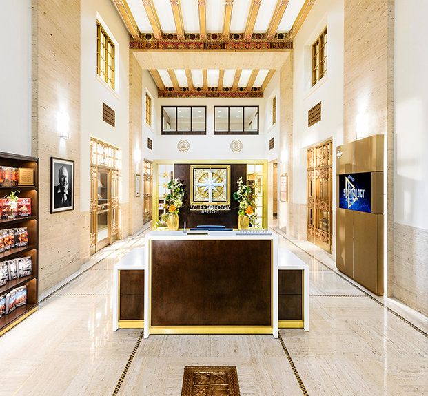 Het huidige, prachtige 5100 vierkante meter grote monument dat nu op nr. 1 Griswold staat, dateert uit 1927. Samen met plaatselijke ambachtslieden, heeft de Kerk ingewikkelde details van het historische gebouw gerestaureerd – van zijn muurschilderingen aan het plafond en de koperen details die zijn neoklassieke interieur sieren, tot het externe kalksteen en ijzerwerk dat door Corrado Parducci was ontworpen – een man die nagenoeg het gezicht van de binnenstad van Detroit bepaalde – niet te vergeten de hoekklok van het gebouw die al meer dan 50 jaar een bekend gezicht is voor inwoners. Als Scientology Kerk Detroit staat het pand nu klaar om de religieuze geschiedenis van dienst aan Amerika’s hoofdstad van moed en karakter, voort te zetten.