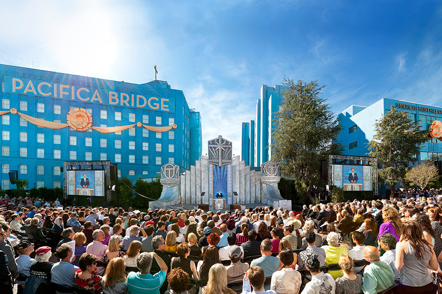 Om het belang hiervan te onderstrepen werden de festiviteiten geleid door de voorzitter van de raad Religious Technology Center, Dhr. David Miscavige. Hij sprak de aanwezige scientologen toe met de woorden: “Vandaag wordt de visie van L. Ron Hubbard werkelijkheid met de ideale Pacifica Brug voor alle scientologen in Los Angeles en inderdaad, voor de hele Verenigde Staten. Want we staan hier voor de fysieke dragers van een Brug die in ons gouden tijdperk voor iedereen toegankelijk is geworden; een Brug die de oversteek naar spirituele vrijheid belichaamt, een Brug die niet alleen over deze boulevard maar naar de eeuwigheid reikt.”