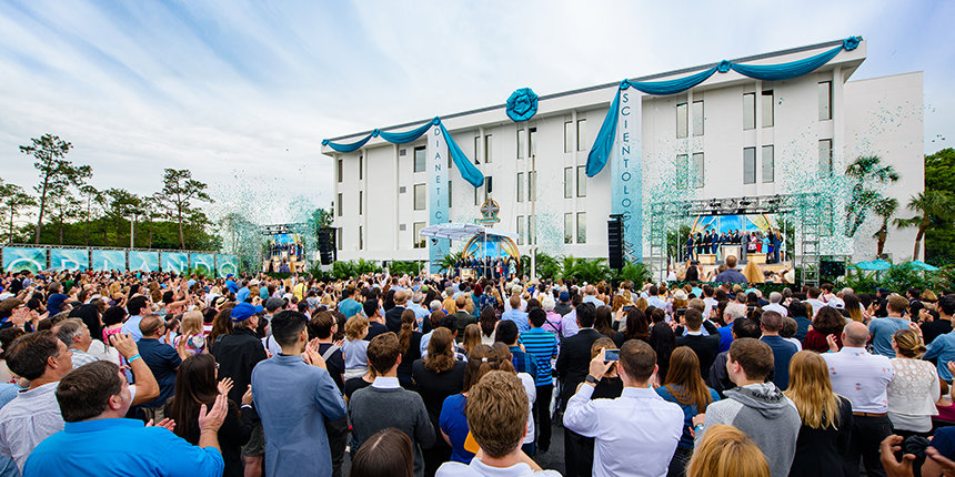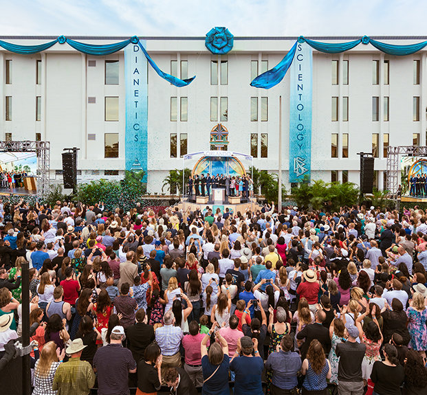 En slechts enkele minuten van de snelweg langs de themaparken (de International Drive) in Orlando, zul je de nieuwste ster aan het firmament zien. Hij fonkelt al in het steeds groter wordende sterrenstelsel van de Kerk. De uitgestrekte faciliteit ligt op bijna 1,6 hectare in het centrum van Florida’s grootste stad in het binnenland, langs de oevers van Lake Ellenor. In deze betoverend plaats, waar gelach en verbeelding tijdloos zijn, kwam er op zaterdag 12 mei, een menigte van meer dan 2000 scientologen en vrienden bijeen onder de middagzon van centraal Florida, om de opening van een nieuwe Scientology Kerk te vieren.