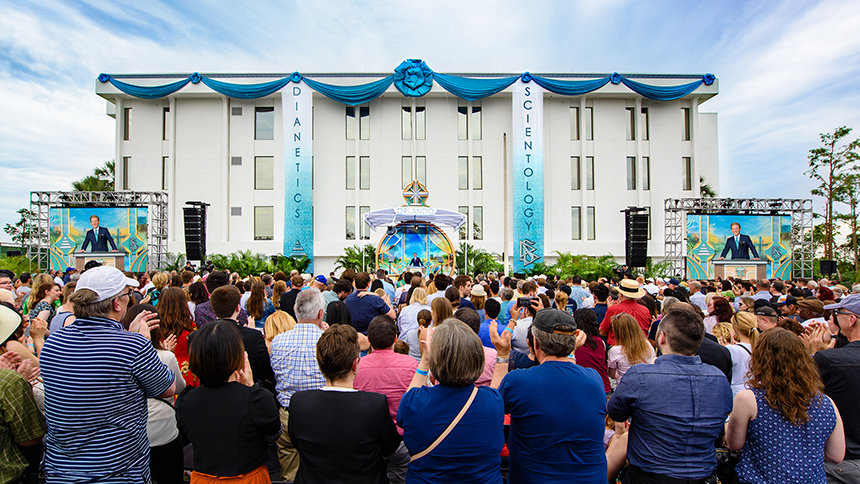Tijdens deze speciale gebeurtenis zei de heer David Miscavige, de kerkelijk leider van de Scientology religie: “Behalve al het andere waar jullie stad om bekend is, is er nog een andere manier om dit verhaal te vertellen en het komt uit een ander soort magie voort. Want met het doorknippen van het lint, verschijnt er een nieuwe Scientology Kerk en daarmee een koninkrijk van spirituele vrijheid waar elke burger heerst.”