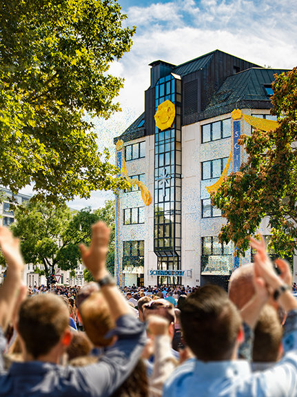 In het licht van dit historische moment zei dhr. David Miscavige, kerkelijk leider van de Scientology religie: “Vandaag wijden we Duitslands fraaiste Scientology Kerk in, een thuis dat passend is voor een land dat een belangrijke steunpilaar is. Het staat voor het feit dat niets groter is dan het nastreven van wijsheid. ... En niets meer duurzaam is dan waardigheid en vrijheid. Wat dat betreft belichaamt deze Kerk de Doeleinden van Scientology: ‘Een beschaving zonder krankzinnigheid, zonder criminelen en zonder oorlog, waar het capabele mensen gegund is succes te hebben en waar het eerlijke mensen gegund is rechten te hebben, en waar de Mens vrij is om zich tot hogere niveaus te verheffen.’ ... En dus openen we onze deuren.”
