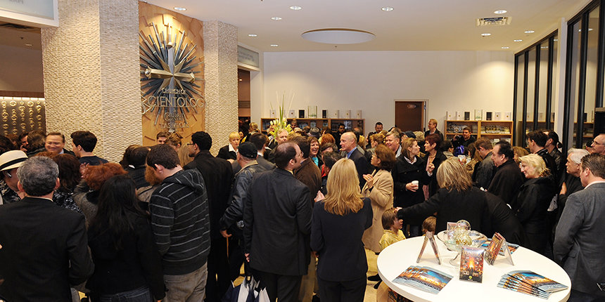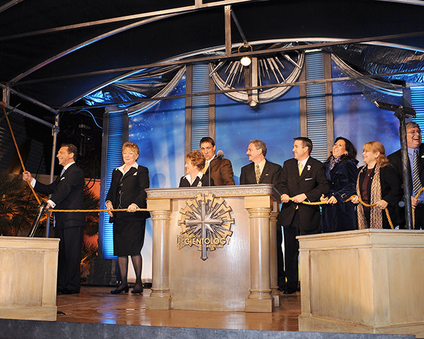In het gezelschap van plaatselijke scientologen die het speerpunt waren voor de realisatie van deze nieuwe Kerk, knipte de heer Miscavige het lint door en nodigde iedereen uit om binnen eens een kijkje te nemen.