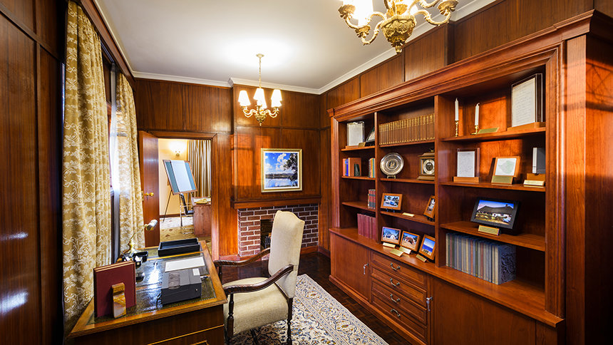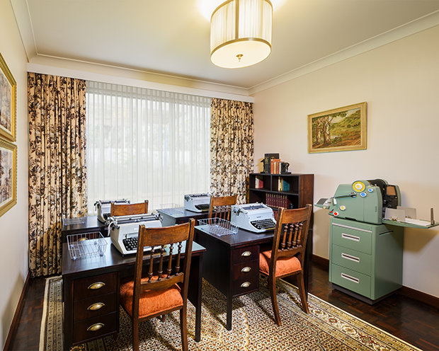 Vandaag de dag is deze Brits-koloniale locatie tot in de puntjes gerestaureerd – precies zoals in de tijd toen meneer Hubbard er was. Het behang, de kasten en verlichtingselementen zijn overeenkomstig archieffoto’s. Kunstwerken zijn teruggevonden. Dé typemachines die meneer Hubbard aan zijn team van typisten beschikbaar had gesteld, waren met zorg geconserveerd. Onder de andere tentoongestelde artefacten bevinden zich het pak dat hij tijdens het filmen van zijn legendarische Clearing Cursus-lezingen droeg, en zelfs de koffer die hij had gebruikt toen hij naar Engeland terugkeerde.