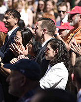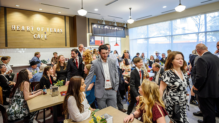 Austins prachtige nieuwe Kerk staat aan de andere kant van de straat van de Universiteit van Texas, aan de Drag, waar elke dag wel 70.000 mensen langslopen. Vanaf vandaag zijn de kamerhoge ramen van de Kerk op straatniveau een uitnodiging aan voorbijgangers om binnen te komen, te kijken, te luisteren en een voorproefje te krijgen van Texaanse spirituele vrijheid.