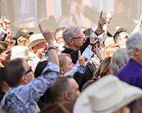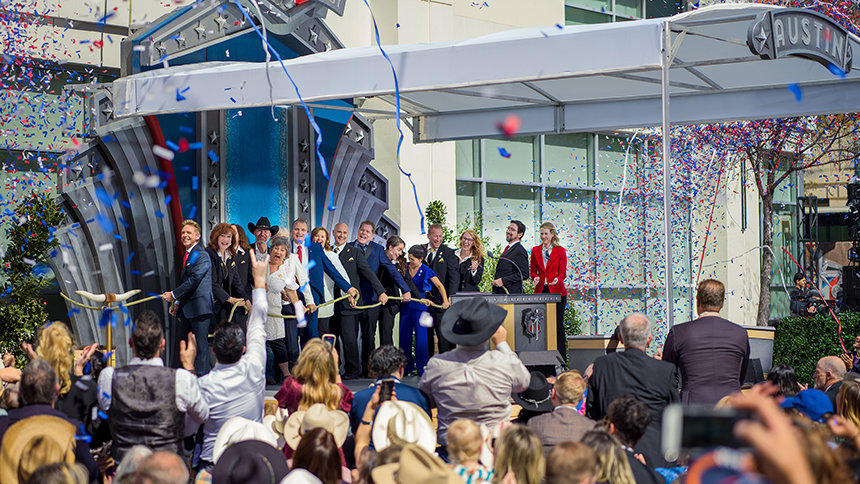 En vandaag moet ik met wat Texaanse trots toegeven dat we weer een grote stap vieren in zorgen dat onze wijk de beste van de beste blijft. Hook ’em Horns! [de leuze en het handsignaal van de Universiteit van Texas]”, zei hij tegen de joelende menigte.