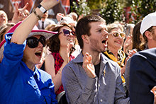 Een opgetogen menigte verwelkomt de opening van een ode aan de Texaanse vrijheid aan de ‘Drag’, de belangrijkste verkeersader in de hoofdstad.
