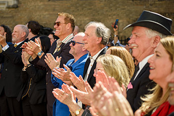 Terwijl we vandaag, met deze Grootse Opening, de terugkeer vieren van een belangrijke speler in deze universiteitsbuurt. Dus wat ik eigenlijk zou moeten zeggen is: ‘Welkom terug!’”