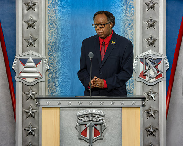 Een rechtvaardige samenleving vereist opoffering en toewijding”, zei meneer Linder. “Een groot man zei zelfs eens: ‘Onrecht is niet iets waarmee iemand die de macht heeft zich in zou moeten laten.’ Dat was meneer L. Ron Hubbard. Om dit in de verhitte jaren zestig te zeggen, toont een enorme moed.