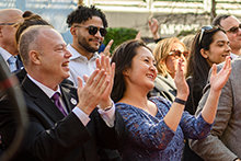 Onder de gastsprekers was advocaat en adviseur van de stad meneer Rob Fioretti. “Chicago staat zijn mannetje – een flinke doordouwer met een van ’s werelds meest herkenbare skylines”, zei hij tegen de menigte. “Ontwerpen die hier bedacht zijn, bepalen de skylines van Amerika en zelfs de skylines van de wereld. En wat geweldig is aan de Scientology Kerk, is dat jullie dat begrijpen. Jullie begrijpen het karakter van deze stad op zoveel niveaus.