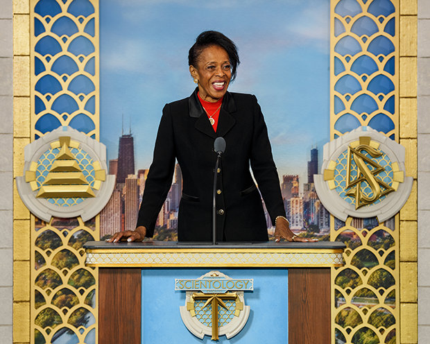 Dr. Gwen Appleberry, burgeradviseur voor het politiebureau van Chicago en de Raad van Onderwijs, sprak over de wijsheid van de Grondlegger van de religie: “Ik weet wel iets over het potentieel binnen die deuren. Zie je, 47 jaar geleden zag ik Dianetics voor het eerst”, zei ze over het historische boek van de Grondlegger van Scientology L. Ron Hubbard.