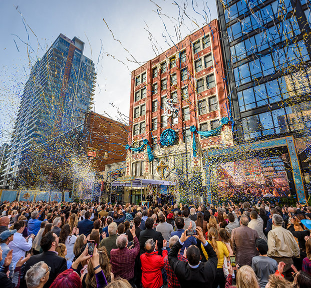 Duizenden mensen vieren de Grootse Opening in de South Loop-wijk van een monument dat een nieuw leven kreeg en waarin iedereen hoop en hulp wordt geboden.
