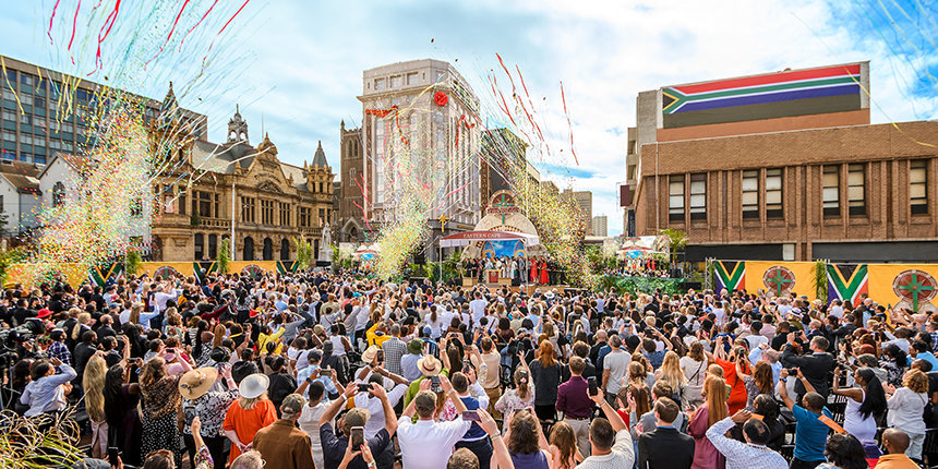 Echter, ondanks alle pracht die avond was er nog één stralende ster, een halve wereld verderop. De aanwezigen waren vervolgens getuige van de gefilmde hoogtepunten van de Grootse Opening van Scientology’s nieuwste Ideale Org in Oost-Kaap, Zuid-Afrika. Een gerestaureerd, 10 verdiepingen tellend, 90 jaar oud meesterwerk in de geboorteplaats van Nelson Mandela dat uitkijkt over het weidse ontmoetingspunt van land en zee bij Mandela Bay.