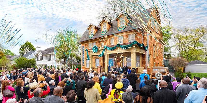 De transformerende geschiedenis van het boek was ook te zien met een verbluffende visuele presentatie van de openingsplechtigheid van een nieuwe LRH Historische Locatie: de allereerste Dianetics Stichting. Bij de opening vorige maand op Aberdeen Road 42, in Elizabeth, New Jersey, sloten hoogwaardigheids­bekleders zich aan bij Scientologists en buren, en waren ze getuige dat die nalatenschap van Boek Eén weer tot leven kwam.