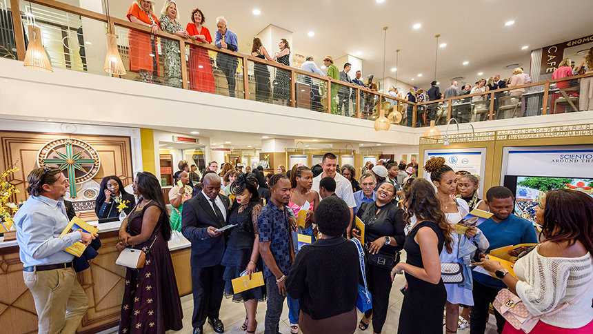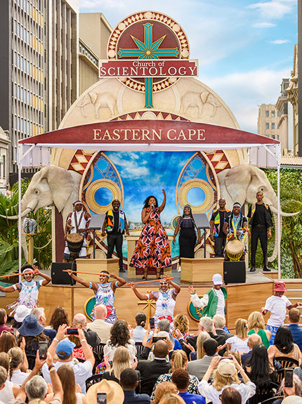 In de cirkel die gevormd wordt rond de historische marktplaats, steeg de energie terwijl vooraanstaande burgers, lokale bewoners en Scientologists samenkwamen om de Grootse Opening van de nieuwe Ideale Scientology Kerk Oost-Kaap te vieren. De gebeurtenis op een frisse, zonnige zondagmiddag aan de Sunshine Coast begon met livemuziek en een boeiende dans, gedreven door de ritmische beat van traditionele djembé-trommels. Het vulde de aanwezigen met de ontembare geest en levendige hartslag van Afrika. Het gejuich weerklonk over de Nelson Mandela Bay, genoemd naar de president die het land verenigde en transformeerde – en die in Oost-Kaap werd geboren.