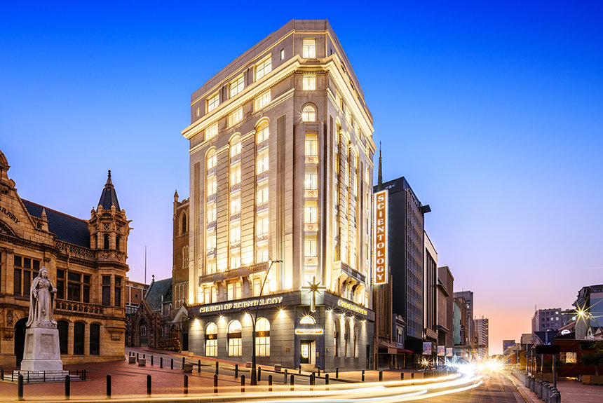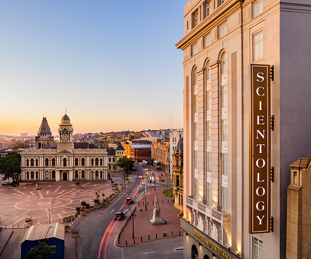 TIEN VERDIEPINGEN VAN TRIOMF VOOR ZUID-AFRIKA TERWIJL DE NIEUWE SCIENTOLOGY KERK IN OOST-KAAP OPENT