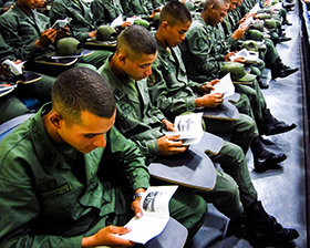 - Venezuela's resort eiland Margarita ervoer de kracht van De Weg naar een Gelukkig Leven toen de nationale politie de 21 leefregels uit het boekje adopteerden en op hun beurt zo'n 180.000 exemplaren uitdeelden, wat bijdroeg aan een 65 procent daling in ernstige misdaden.