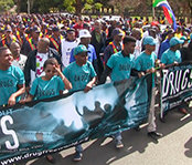 • Bij Drugsvrije Wereld demonstraties en evenementen in Zuid-Afrika en over het hele continent werden bijna 140.000 De Feiten over Drugs boekjes verspreid. Bij Drugsvrije Gelofte acties in Colombia werden 50.000 handtekeningen vergaart. Drugsvrije Wereld teams, tijdens Super Bowl 52 in Minnesota, VS, deelden 230.000 boekjes uit. En tijdens het wereldkampioenschap voetbal in Rusland werden meer dan een half miljoen boekjes uitgedeeld, van de Zwarte Zee tot aan het Rode Plein. Dat alles bij elkaar wil zeggen dat er het afgelopen jaar meer dan 15 miljoen mensen in 19 tijdzones De Feiten over Drugs boekjes hebben ontvangen.