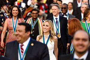 De ontvangers van de drie IAS Freedom Medals dit jaar toonden hun moed. Daarmee werd het thema van de avond onderstreept, de niet-aflatende toewijding in de richting van het bereiken van vrede, onderwijs, fatsoen, sociale gerechtigheid en een bestaan vrij van drugs en criminaliteit over de hele wereld. Dhr. Miscavige introduceerde elk van hen afzonderlijk, en er waren speciale videopresentaties die hun onverschrokken toewijding aan de mensheid toonde:
