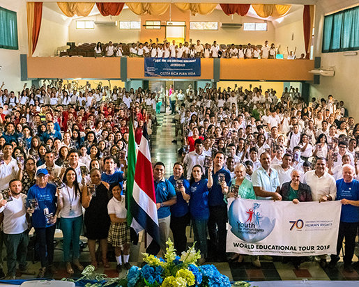 • In Costa Rica, waar het Jongeren voor Mensenrechten boekje een officiële publicatie werd van het nationale voetbalteam dat naar het wereldkampioenschap ging. Dat begon een beweging in alle 82 districten en daarbij werden in het totaal 2 miljoen mensen bereikt.
