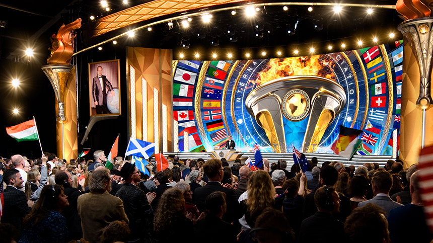 “Zoals het de traditie is, reizen we vanavond 38.000 kilometer door ons IAS-land en volgen we het spoor van iedere vector van wereldwijde redding”, begon dhr. David Miscavige, kerkelijk leider van de Scientology religie. “Onze poging is deze wereld te ontdoen van drugsgebruik; ons mensenrechten mandaat; en hetzelfde voor de normen en waarden zoals die worden verkondigd in de 21 leefregels van De Weg naar een Gelukkig Leven. Het punt is, ben je oprecht van mening dat geschiedenis altijd moet rijmen op verdoemenis? En dat conflict en onrechtvaardigheid onvermijdelijk zijn? Nou, LRH dacht dat nooit en de IAS ook niet.”
