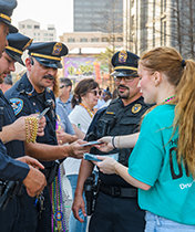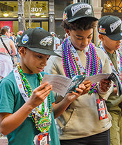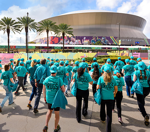 EEN HOGE SCORE BIJ DE GROTE WEDSTRIJD Het grootste eendaagse evenement van het jaar was de jaarlijkse distributieactie bij de Super Bowl in New Orleans. Meer dan 120 Drug-Free World-vrijwilligers trokken door het French Quarter en bereikten uiteindelijk fans met 360.000 Feiten over Drugs-boekjes.