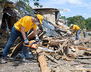 VOLUNTEER MINISTERS REAGEREN WAAR OF WANNEER DAN OOK VM’s beantwoordden dit jaar de oproep bij meer dan tien natuurrampen, waaronder een tropische storm in Venezuela, stortregens in Texas, catastrofale overstromingen in Spanje, aanhoudende stortregens in Kenia en een aardbeving van 7,1 op de schaal van Richter in Nepal.
