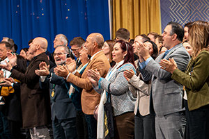 Leden van de IAS en gasten staan op uit waardering voor de levensreddende en levensveranderende werkzaamheden van de Scientology Volunteer Ministers het afgelopen jaar.