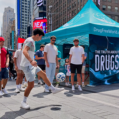 EEN WERELDWIJDE DRIVE VOOR EEN DRUGSVRIJE WERELD Het grootste niet-gouvernementele drugsvoorlichtingsprogramma ter wereld, Drug-Free World, bracht de Feiten over Drugs het afgelopen jaar naar 2700 evenementen in bijna 400 steden en dorpen, van buurtfeesten tot mega sportevenementen zoals de FIFA Club World Cup.