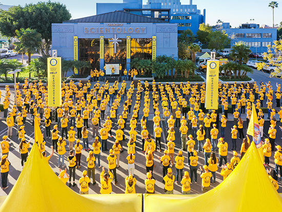 Meneer Miscavige richt de schijnwerpers op de wereldberoemde Gele Shirts (Scientology Volunteer Ministers) die onmiddellijk worden herkend voor het bieden van onvoorwaardelijke hulp wereldwijd.