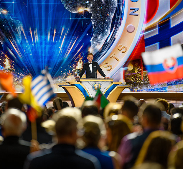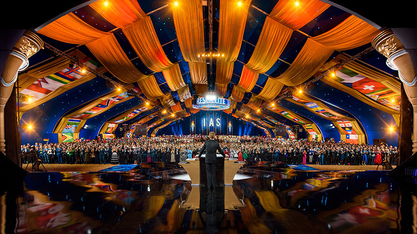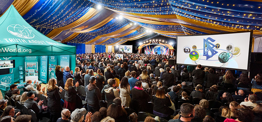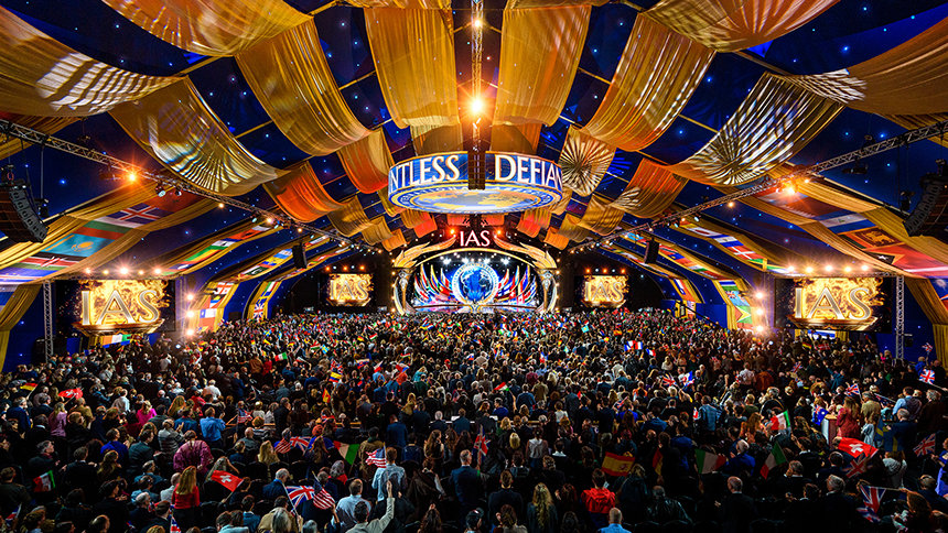 Elegantie en pracht vormen het kader van de viering terwijl leden van de IAS van zes continenten samenkomen in Saint Hill, het historische huis van de Scientology Grondlegger L. Ron Hubbard in West Sussex. Terwijl ze over het rode tapijt glijden, betreedt het publiek vol verwachting de grote feesttent, vlaggen uit de hele wereld wapperen hoog in de lucht en harten lichten op terwijl alle ogen zich op het podium richten.