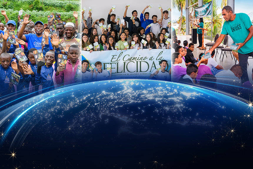 WERELDWIJDE REDDING Meer dan 360 miljoen exemplaren van Wat zijn mensenrechten?, De Feiten over Drugs en De weg naar een Gelukkig Leven zijn over de hele wereld verspreid en hebben mensen in elk land op aarde bereikt.