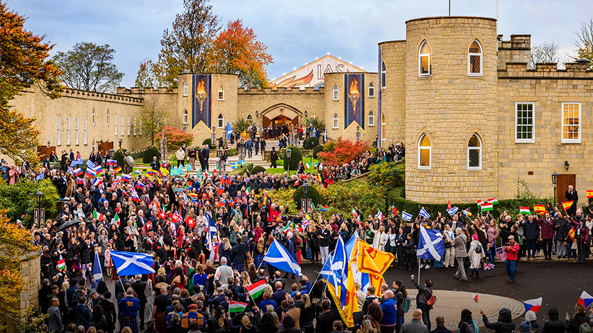 Leden van de International Association of Scientologists (IAS) komen samen in East Grinstead, Zuid-Engeland, om 12 maanden van onwankelbare eenheid, standvastige toewijding en het verheffen van de menselijke geest te vieren.