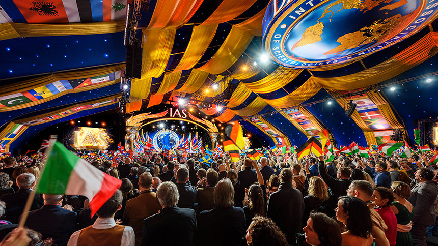 “Welkom op de avond waarop we de geest van de IAS oproepen – een geest die geboren is uit perfecte eenheid en die de lucht die we inademen doordringt”, begon meneer David Miscavige, kerkelijk leider van de Scientology religie. “Vanavond is die geest van de IAS altijd aanwezig, allesomvattend en voor altijd levend.”