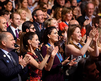 “Als deze wereld ooit L. Ron Hubbard nodig had, dan is het nu, vanavond en over de hele wereld”, zei David Miscavige, Voorzitter van de Raad Religious Technology Center, toen hij aan de agenda van deze inspirerende avond begon. “Maar gelukkig is dat vanaf deze avond precies zijn kaliber. En dan verwijs ik niet alleen naar zijn technische nalatenschap, zijn literaire impact, of zijn tools voor fatsoen, moraliteit en culturele heropleving. Nee, ik bedoel de man zelf. Ik bedoel zijn karakter, uitstraling en beingness. Ik bedoel alles wat hij nu geworden is en voor altijd zal zijn.”