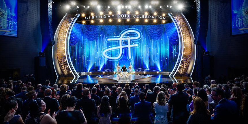 De avond spoelde toen snel vooruit naar 2019 en een prijsuitreiking die het karakter van de avond onderstreepte – een viering van expansie. Meer dan 40 jaar geleden werd aan LRH gevraagd wat hij voor zijn verjaardag wilde. Zijn antwoord was dat hij het geschenk wilde van Scientology organisaties en missies waarmee het in alle opzichten goed gaat, in naam van het leveren van spirituele vrijheid. Door de jaren heen hebben Scientology Kerken over de hele wereld er een spel van gemaakt. Ze strijden in vier klassen en racen naar de finishlijn. Dit jaar hadden de kampioenen die de winnaarscirkel betraden elk successen bereikt die records braken. Er waren de Scientology Missie van Ulm, Duitsland; de Scientology Kerk Stuttgart, Duitsland; de Advanced Organization & Saint Hill Verenigd Koninkrijk; en de Continental Liaison Office van Europa.